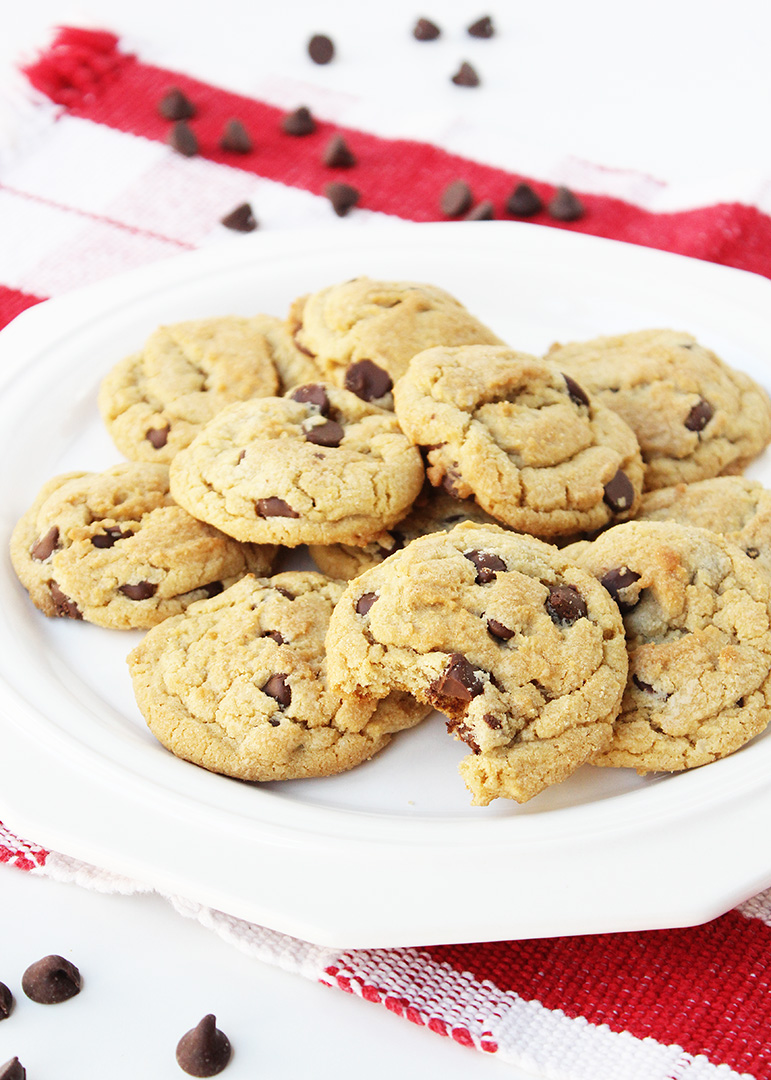 Chocolate chip cookies were one of the very first recipes I ever baked on my own. There is something irresistible about the classic comfort of chewy chocolate chip cookies, warm and straight from the oven! My family has been making the same chewy chocolate chip cookie recipe ever since I was a little girl. This chocolate chip cookie recipe is incredibly easy to make, and it is terrific for doubling to make enough cookies for a crowd.