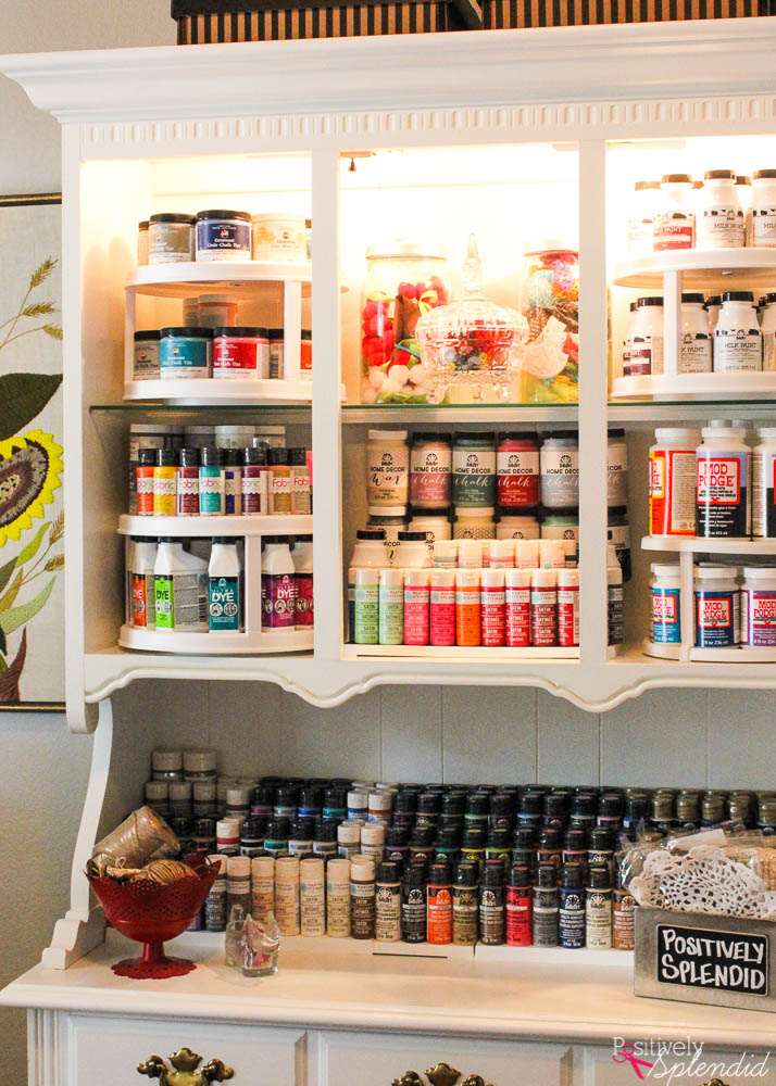 Four two-tiered lazy Susans and various shelves turn this hutch into a craft storage powerhouse!
