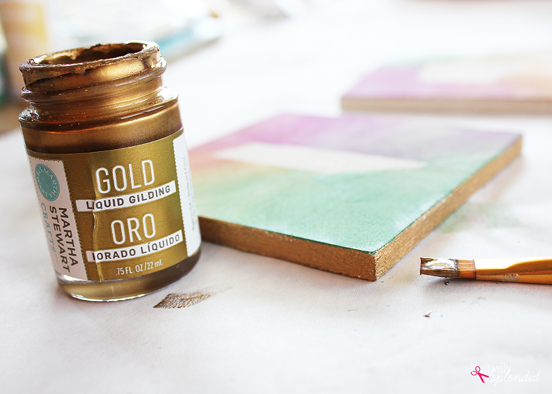 Use a small brush to apply the liquid gilding around the outer perimeter of each coaster. Set aside to dry.