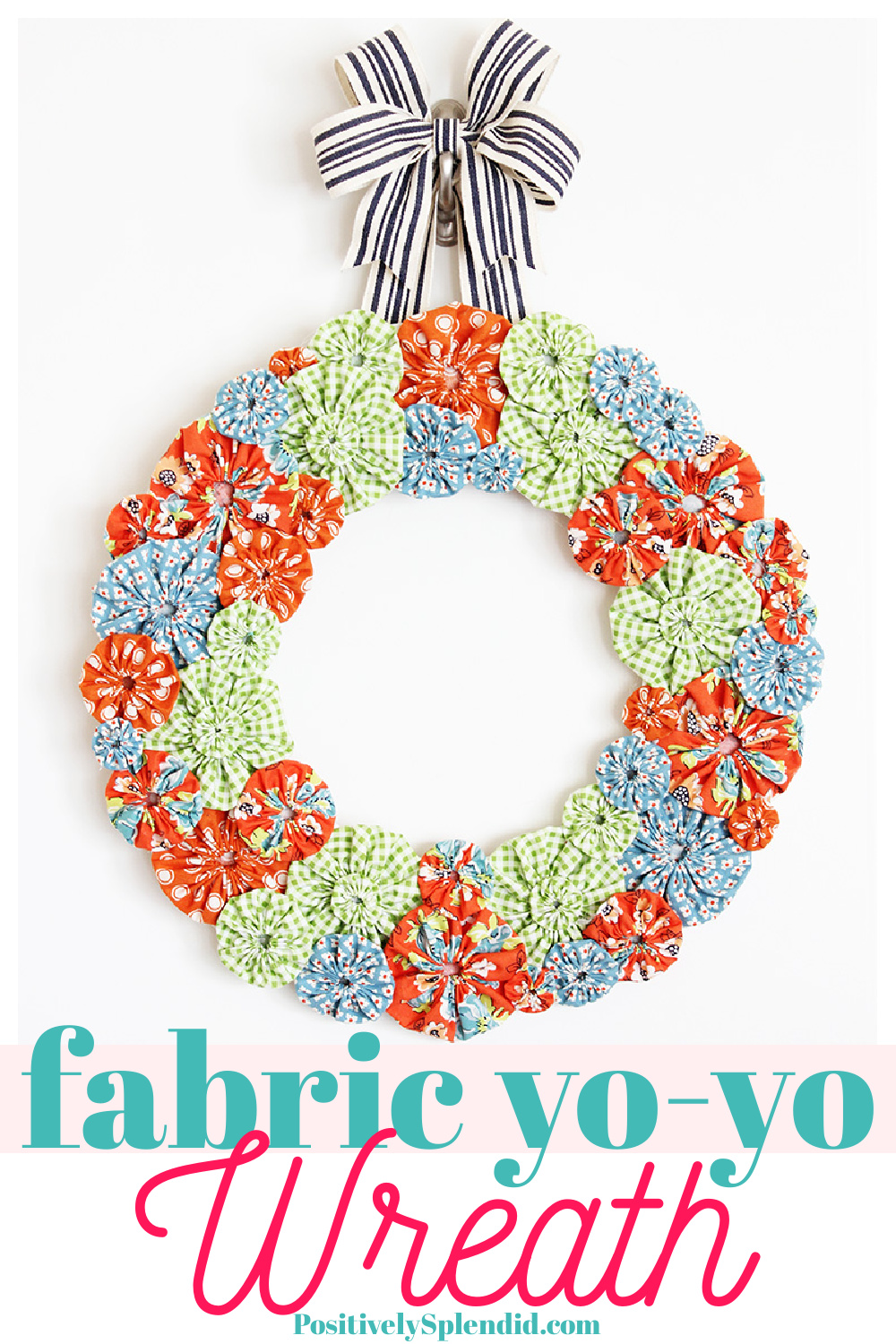 I stacked some of the smallest yo-yos on top of the largest ones to make them look like flowers. I love how this wreath turned out, and I already have plans to make one in Christmas colors!
