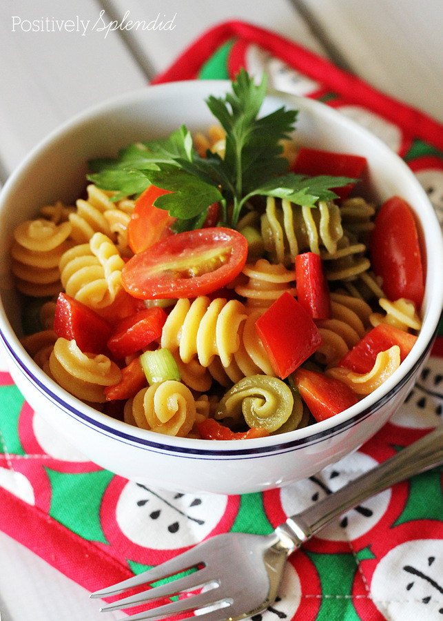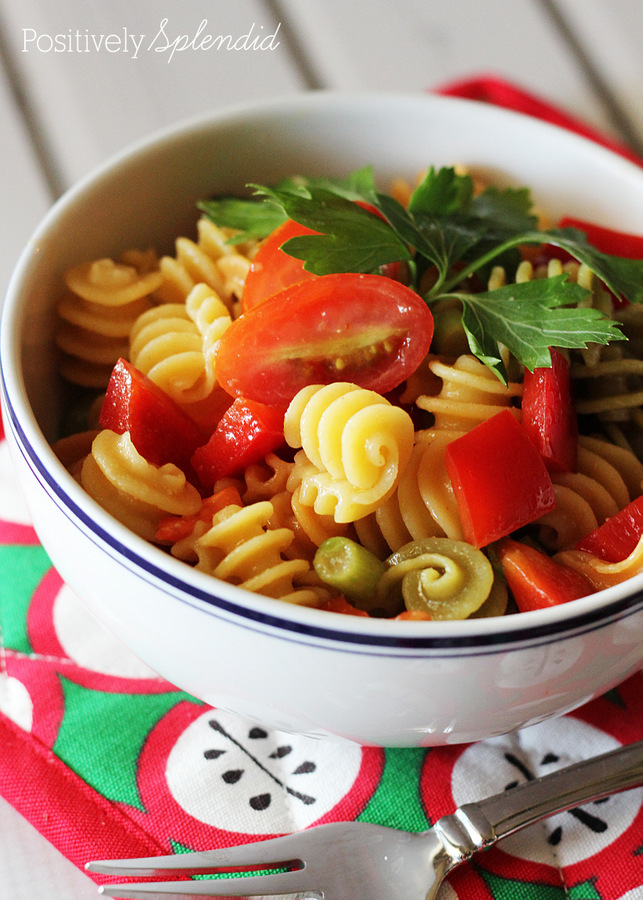 If desired, 1 pound of regular corkscrew pasta can be substituted for the quinoa pasta.