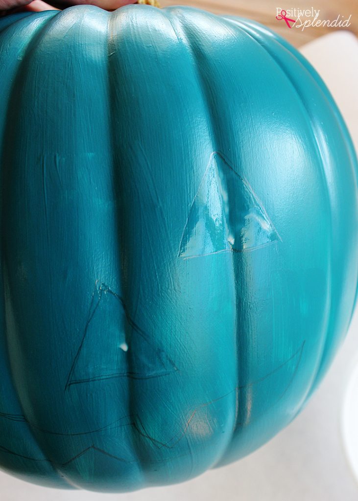 I created a jack-o-lantern face on one side of my largest pumpkin and then finished the other side with the same random design I used on the other pumpkins. This way I can display this set of pumpkins all fall long, even after Halloween has come and gone!