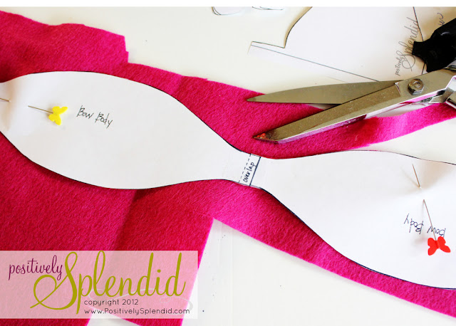 Now, cut out one bow center piece from your pattern printouts for each bow size.