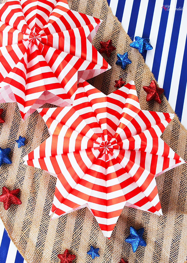 I love a craft project that comes together in just minutes (literally!). These fun paper bag stars are perfect for stringing on garlands for the Fourth of July, but they would be equally fantastic used during the Christmas season as holiday ornaments, as centerpieces at birthday parties or informal weddings, or really any gathering under the sun where you want to make a big impact with just a small investment of time and money. Continue reading for the easy tutorial for how to make some DIY paper bag stars of your own!